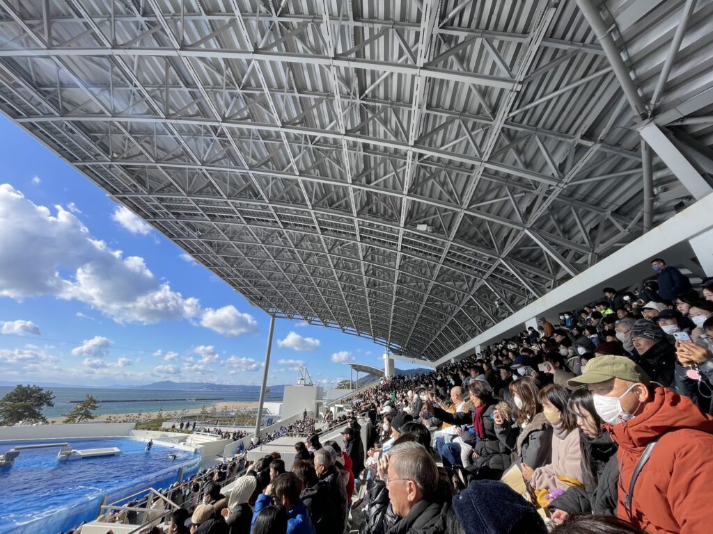 やはり、皆さんシャチ目当てなのか、座るところもないくらい大盛況です。