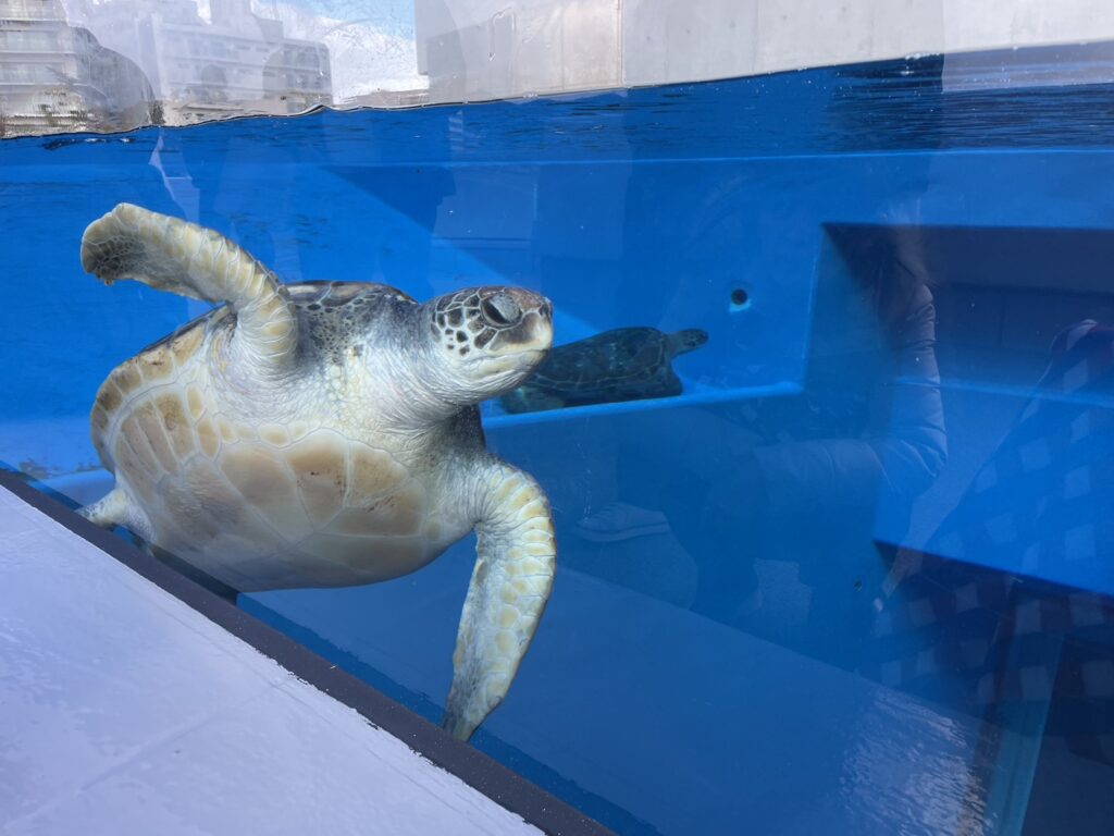 食後は再度入園し、ウミガメやタツノオトシゴなど色々水中生物を見ました。