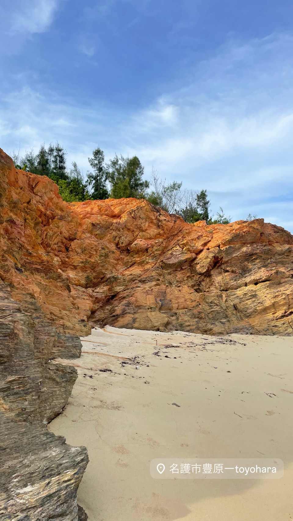 この写真は、沖縄県の北部にある名護市豊原(とよはら)の海岸で撮影したものです。