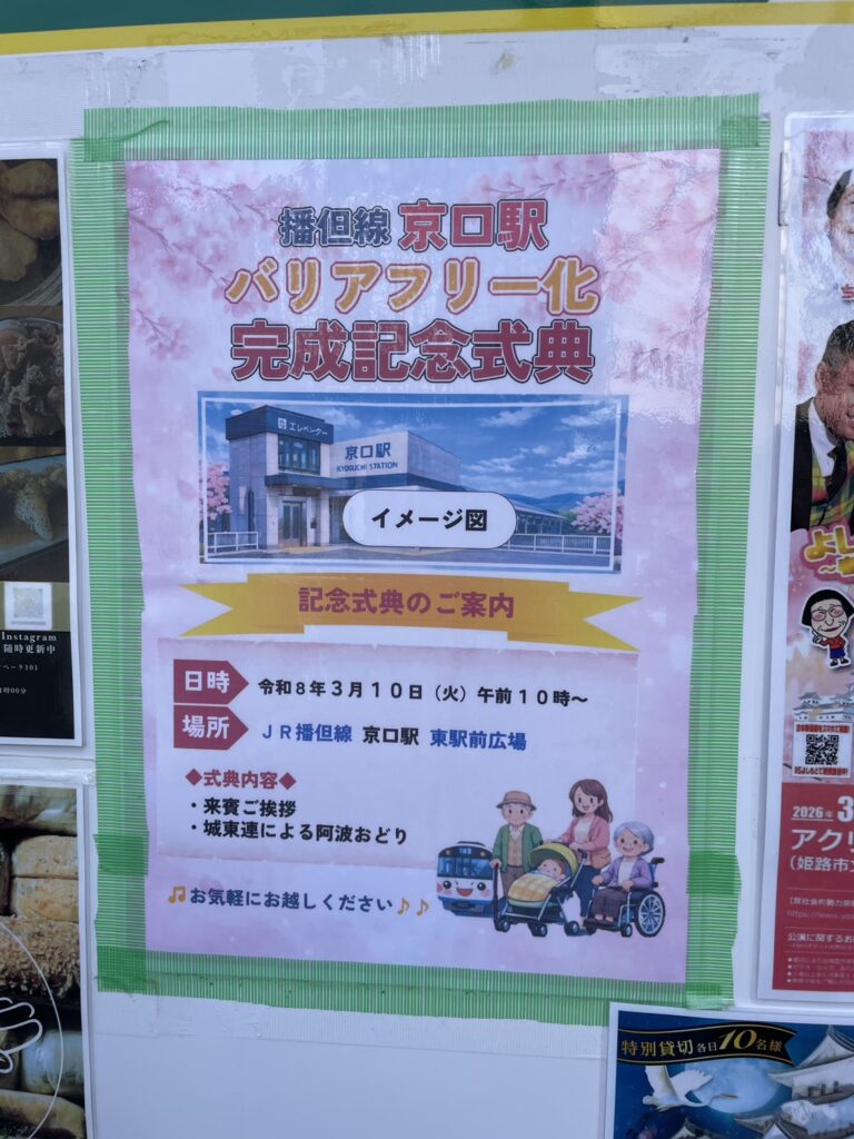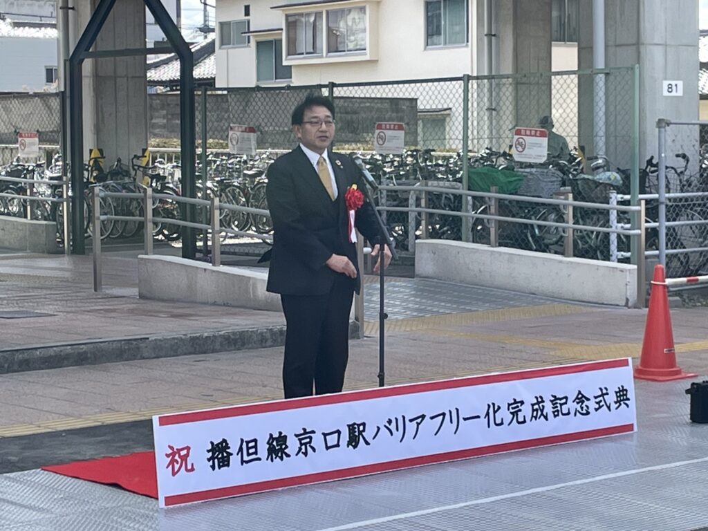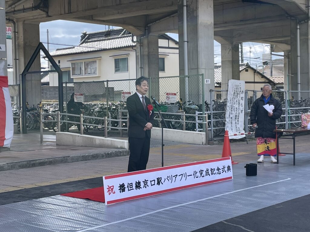 昨年2025年の3月8日のブログで書きましたように、弊社最寄り駅のJR播但線「京口駅」にエレベーターが設置され、先日バリアフリー化完成記念式典が開催されました。
