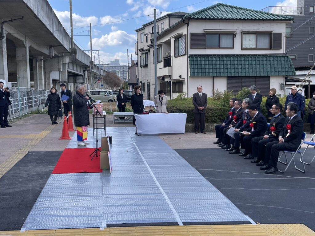 式典は、今回のバリアフリー化に携わった方のスピーチがメインのようです。