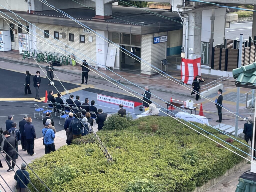 さて、3月10日(火)にJR京口駅の広場でバリアフリー化完成記念式典が行われましたので、様子を見に行ってきました。