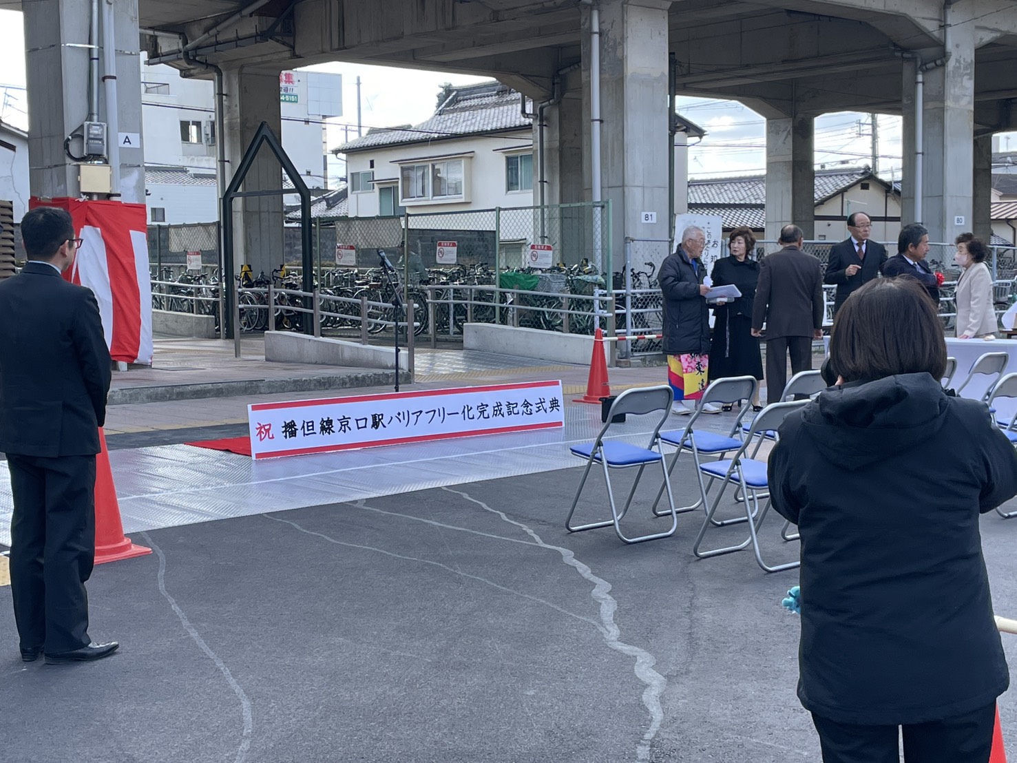 さて、3月10日(火)にJR京口駅の広場でバリアフリー化完成記念式典が行われましたので、様子を見に行ってきました。
